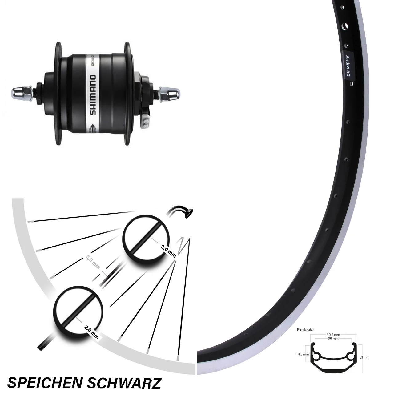 Produktbeschreibung 20 Zoll Nabendynamo Shimano DH-3N31 Vorderrad Ryde Andra 40 schwarz