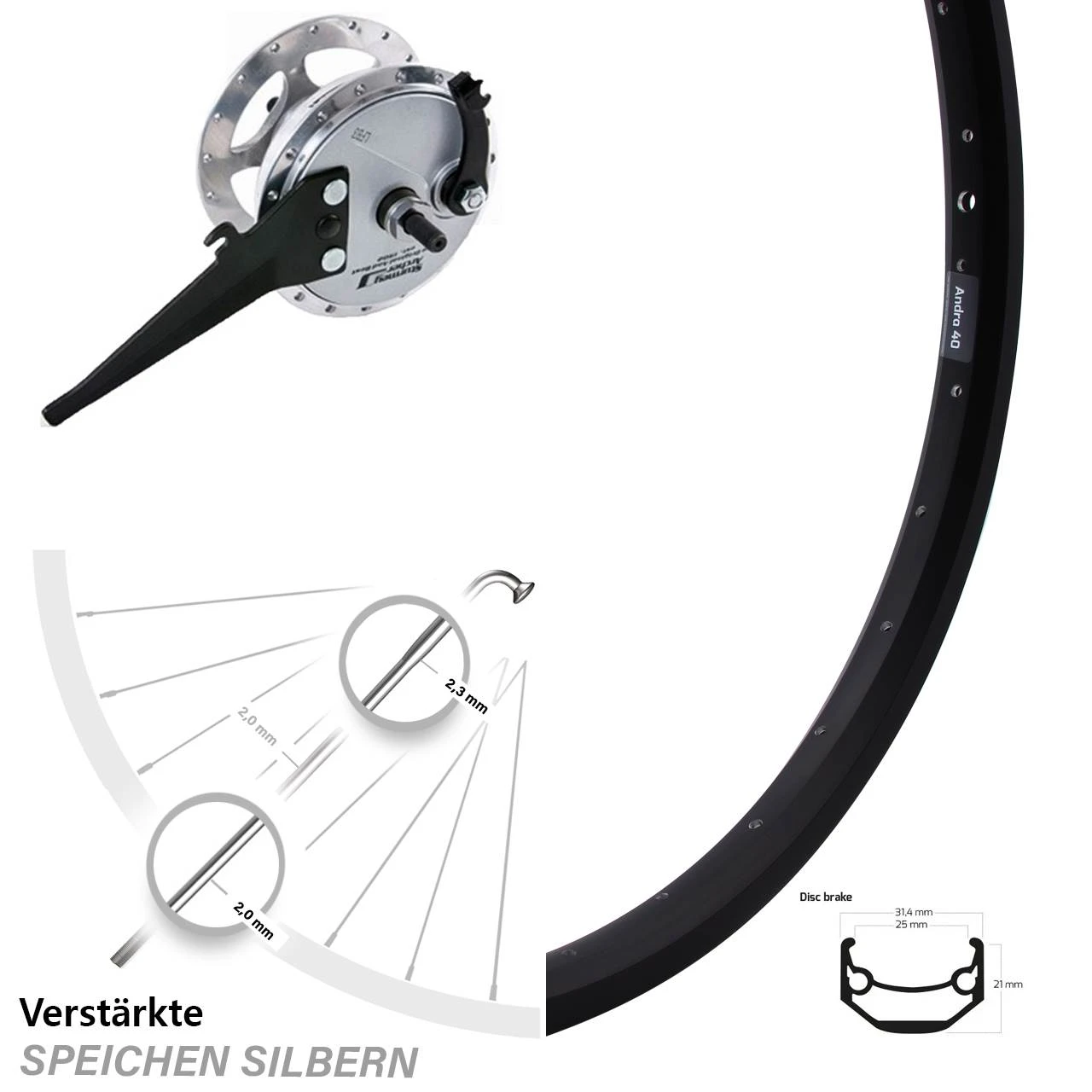 Technische Daten Vorderrad Ryde Andra 40 Disc schwarz mit Nabe Sturmey Archer XL-FDAMBOX silber Trommelbremse