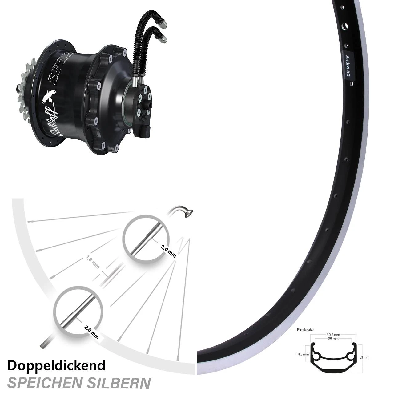 Technische Daten Hinterrad Ryde Andra 40 Felgenbremse schwarz und Nabe Rohloff Speedhub 500/14 CC OEM schwarz
