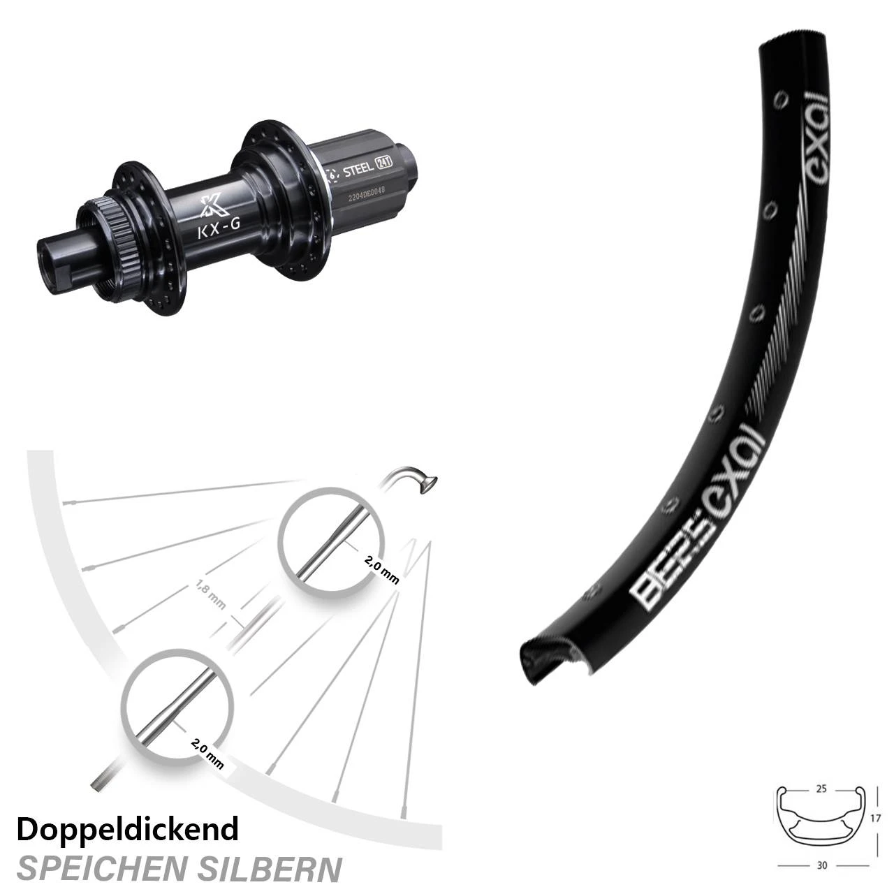 - Nabe: KX-G/S Nabe Hinterrad Steckachse 12/142 Centerlock Stahlachse Stahl-Freilauf schwarz
