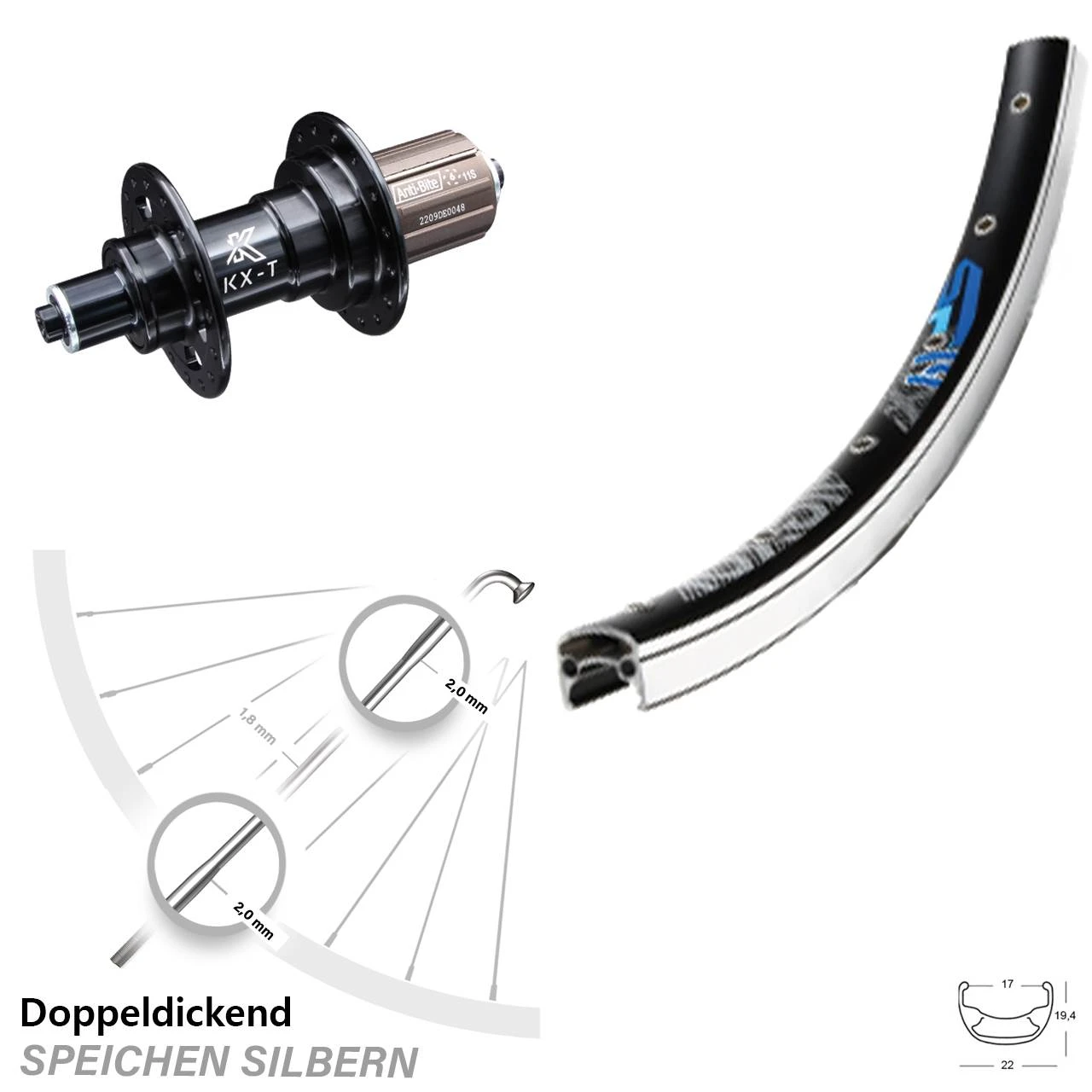- Nabe: KX-T Hinterradnabe 5/135 Felgenbremse schwarz