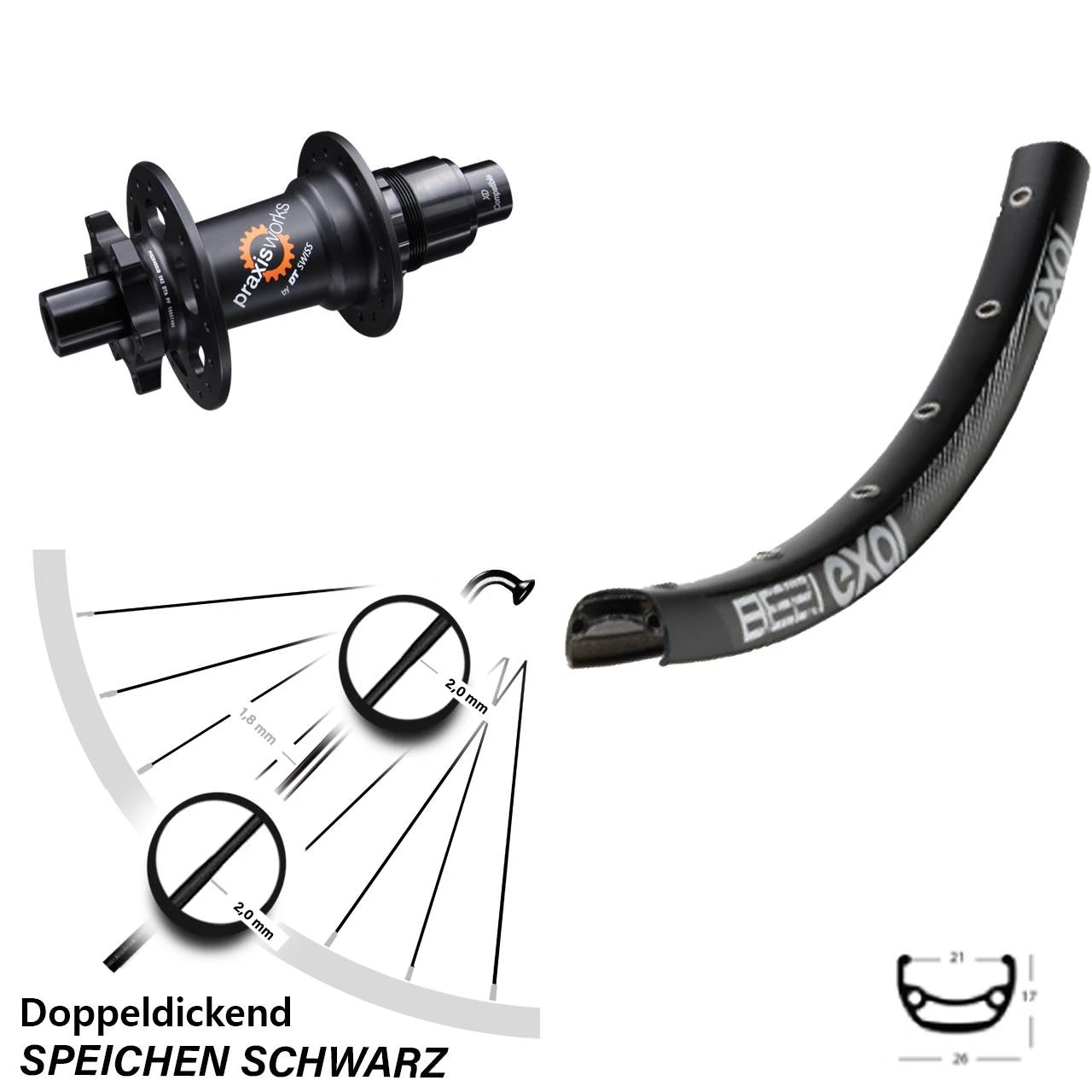 Technische Daten Hinterrad Exal BE 21 schwarz und Nabe DT Swiss 350 SL Disc 6-Loch SRAM XD 12/142