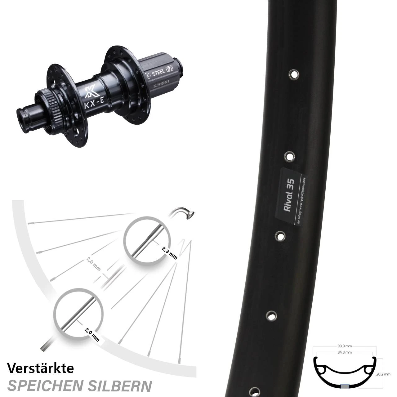 27,5+ Zoll Hinterrad Ryde Rival 35 Disc KX-E Nabe 12×142 mm mit verstĂ€rkten Speichen