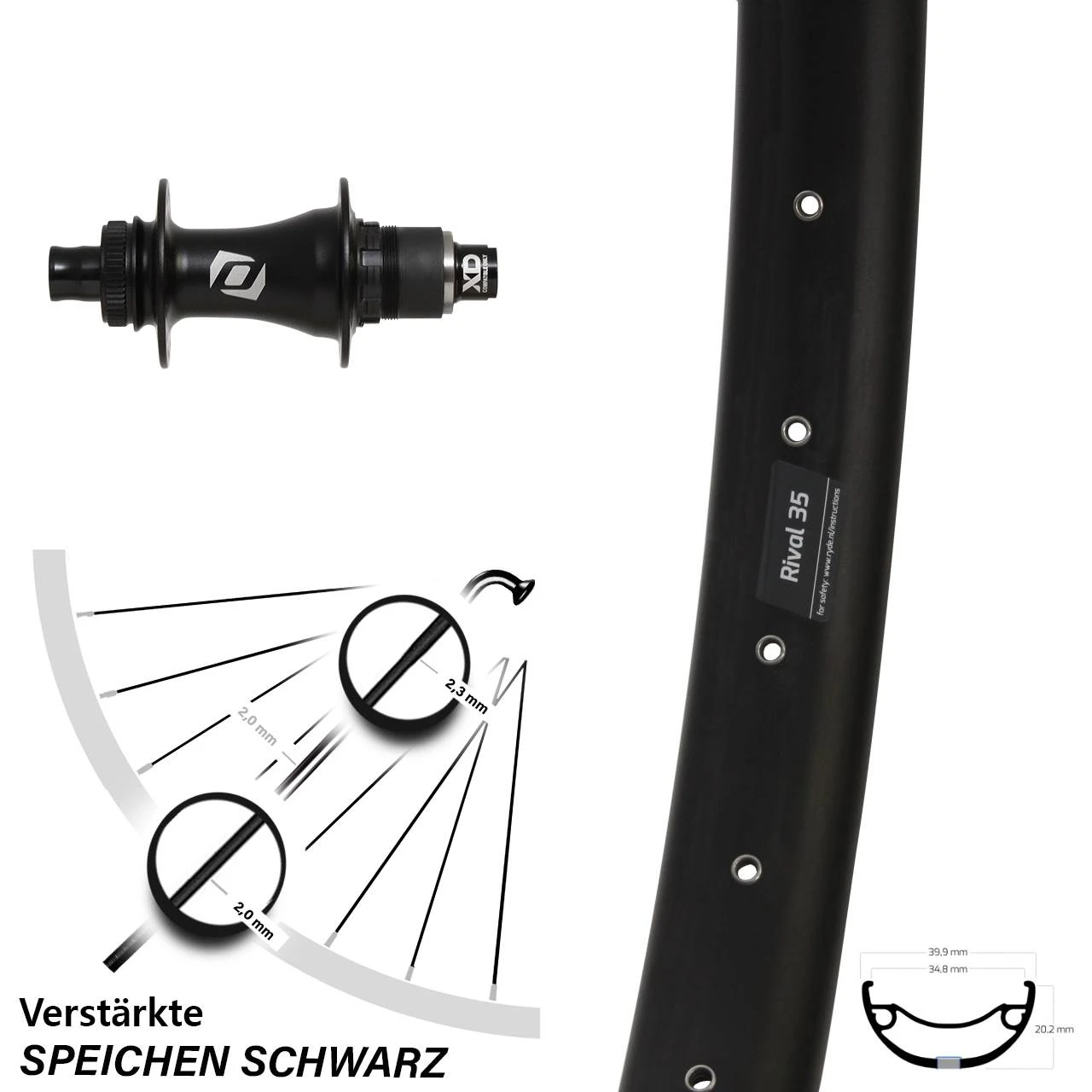 Technische Daten Hinterrad Ryde Rival 35 Disc schwarz und Nabe Syncros Boost SRAM XD Centerlock