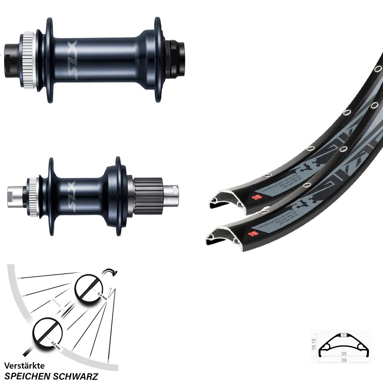 27,5+ Zoll Laufradsatz Shimano SLX Boost Centerlock 12-fach 110/148 mm Rodi TRYP 35 mit verstÀrkten Speichen