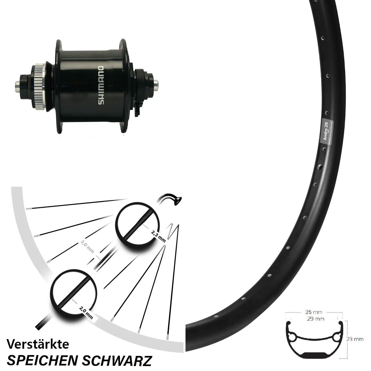 27,5 Zoll Nabendynamo Vorderrad Shimano DH-UR700-3D Ryde Andra 29D mit verstÀrkten Speichen