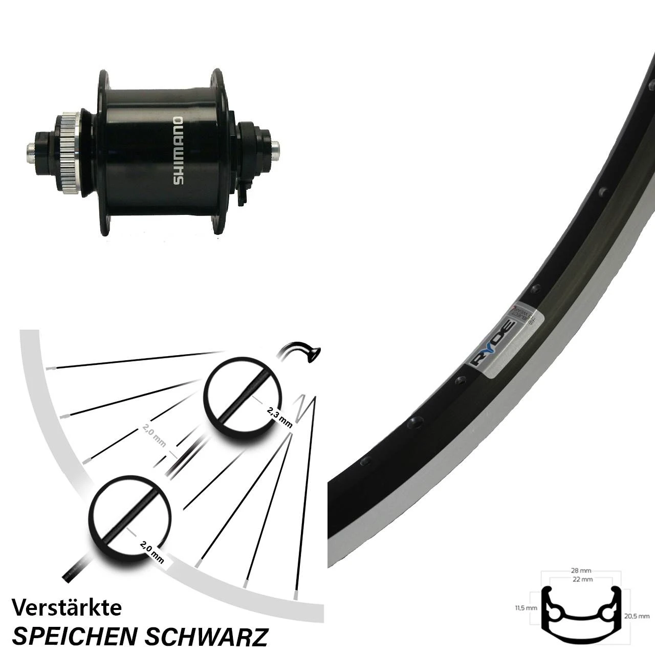 - Vorderrad 27,5 Zoll Ryde Andra 35 schwarz mit Nabendynamo Shimano DH-UR700 schwarz