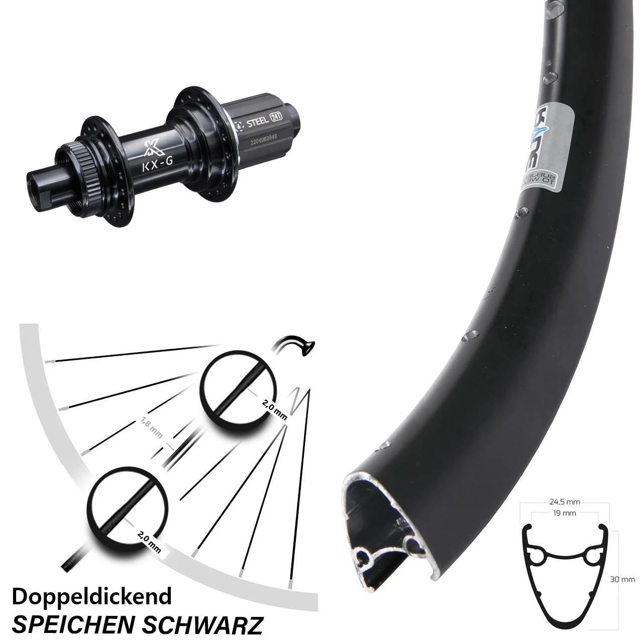 Produktbeschreibung 28-29 Zoll Hinterrad Ryde Dutch 19 Hochprofil mit KX-GS schwarz Nabe