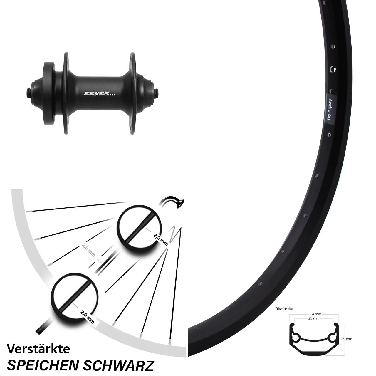 Technische Daten Vorderrad Ryde Andra 40 Disc schwarz mit Nabe Formula ZZYZX DC-21 schwarz