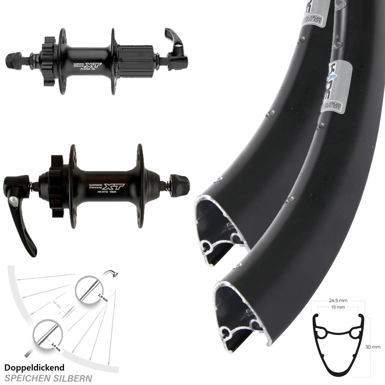 Optimal miteinander funktionierende Fahrradbauteile ermöglichen Ihnen Tag fĂŒr Tag ein effektives Fahrerlebnis. Mit unseren gĂŒnstigen LaufradsĂ€tzen (Vorderrad und Hinterrad) fĂŒr Ihr Fahrrad erhalten Sie den gewĂŒnschten Komfort und die gewohnte QualitĂ€t in Einem! Die Felgen dieses Laufrad-Sets haben eine GröĂe von 28 Zoll, 29 Zoll. Die Einbaubreite der Ryde Dutch 19 Felgen betrĂ€gt 100, 135. Passend dazu erhalten Sie die Naben Shimano XT HB-M756 schwarz, Shimano FH-M756 schwarz in schwarz. Unser Laufrad-Komplett-Set wird komplettiert mit 36 mit einer StĂ€rke von 2,0-1,8-2,0 mm Edelstahl in der Farbe silbern. Bitte beachten Sie, dass dieses Set nur fĂŒr Bikes mit Scheibenbremsen geeignet ist.