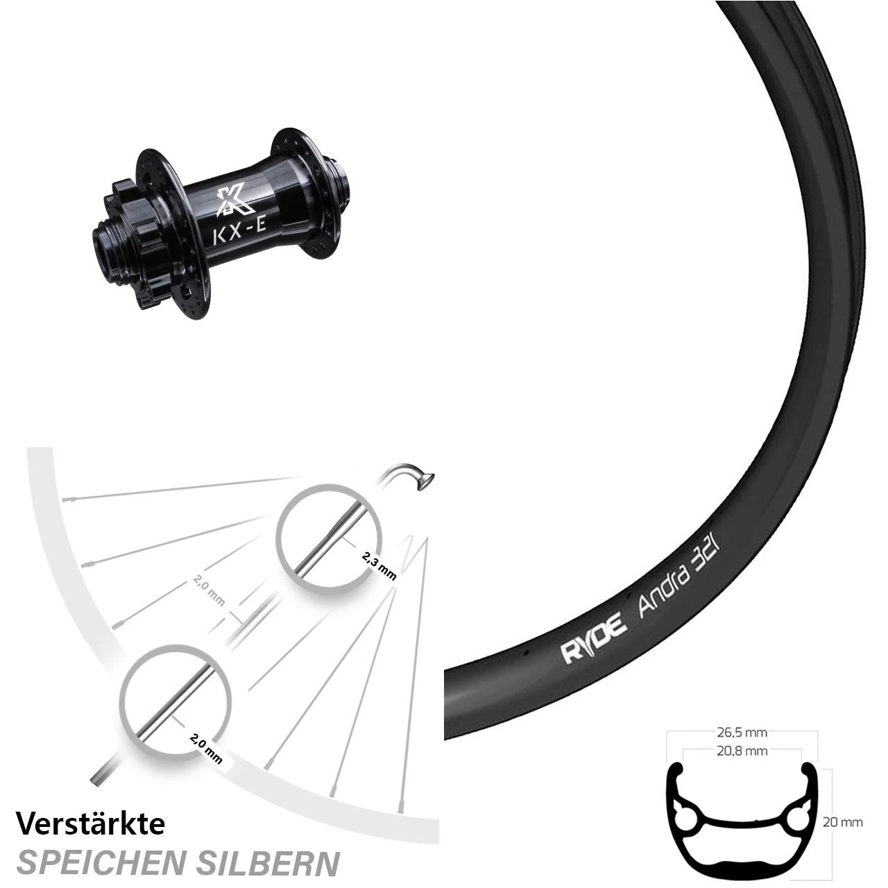 Produktbeschreibung 28-29 Zoll verstÀrktes Vorderrad Ryde Andra 321 Disc schwarz KX-E Nabe 6-loch Steckachse