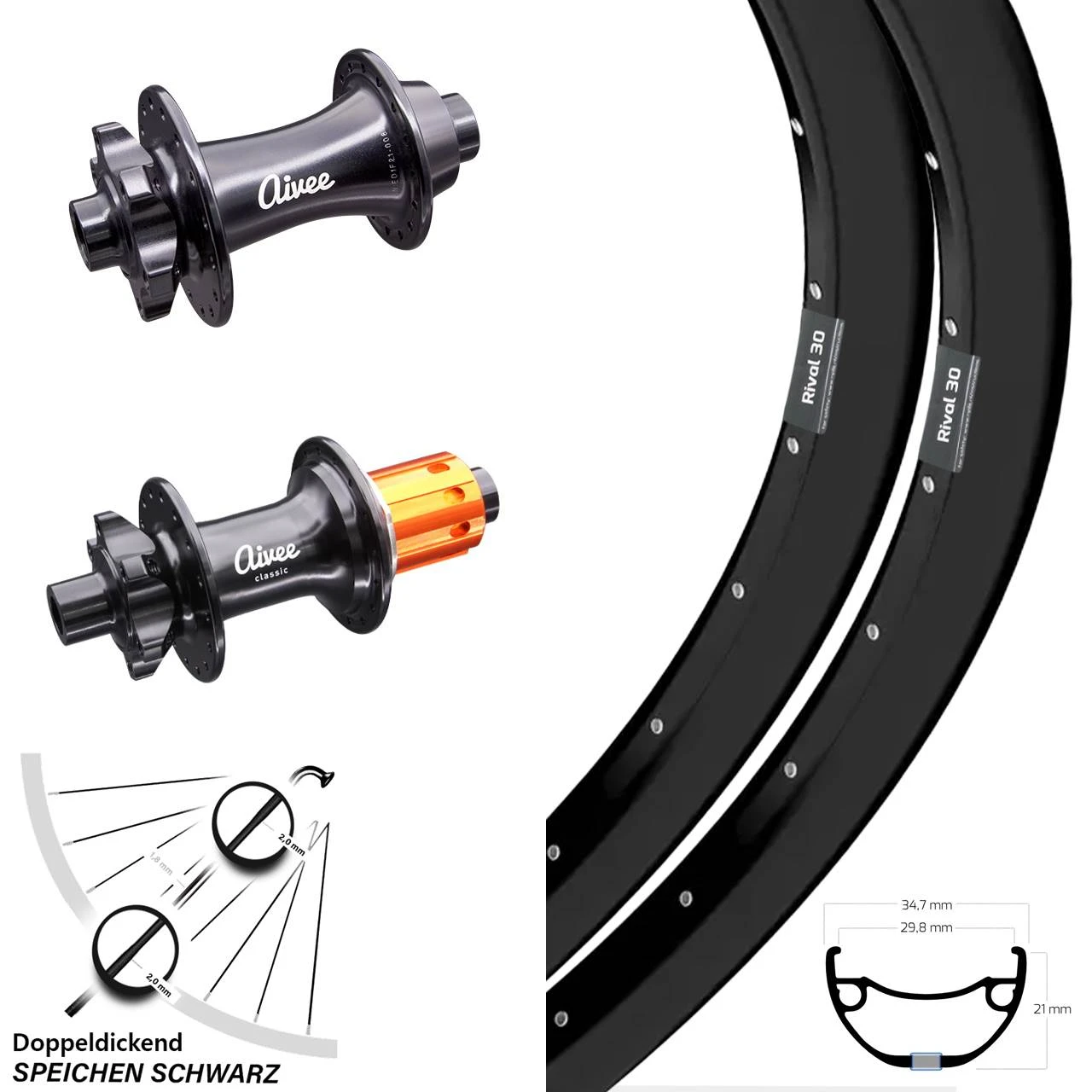 Produktbeschreibung 29 Zoll Laufradsatz Rival 30 mm Innenweite 30-622 Aivee Classic Boost Shimano HG