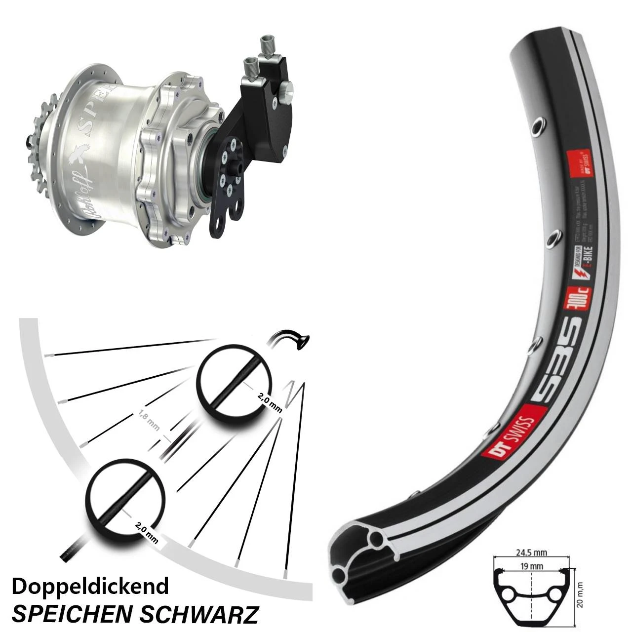 - Felge: DT Swiss 535 Felgenbremse schwarz