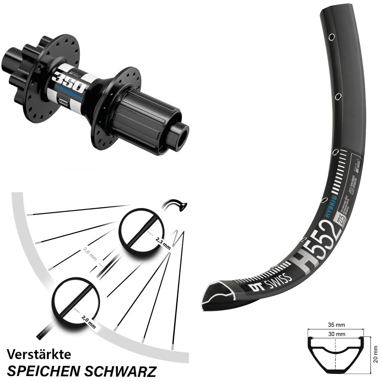 27,5+ Zoll Hinterrad DT Swiss 350 Hybrid Boost und H 552 Felge mit verstÀrkten Speichen