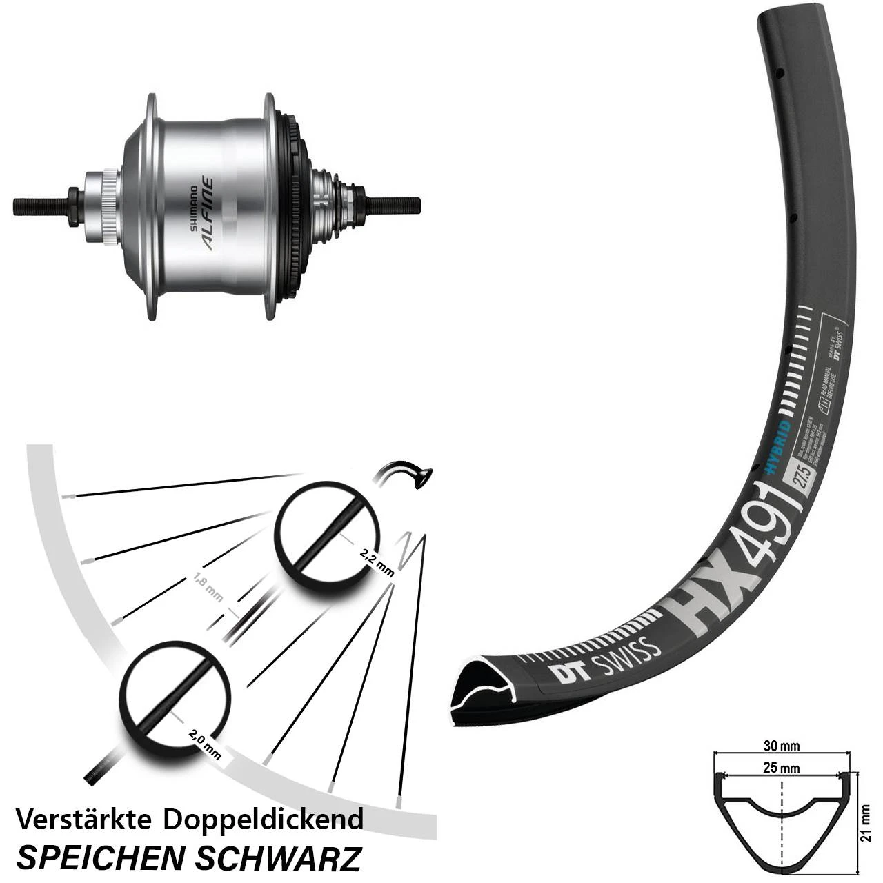 28 Zoll Hinterrad DT Swiss HX-491 Shimano Alfine silbern 11-Gang SG-S7001 mit verstÀrkten Doppeldickendspeichen