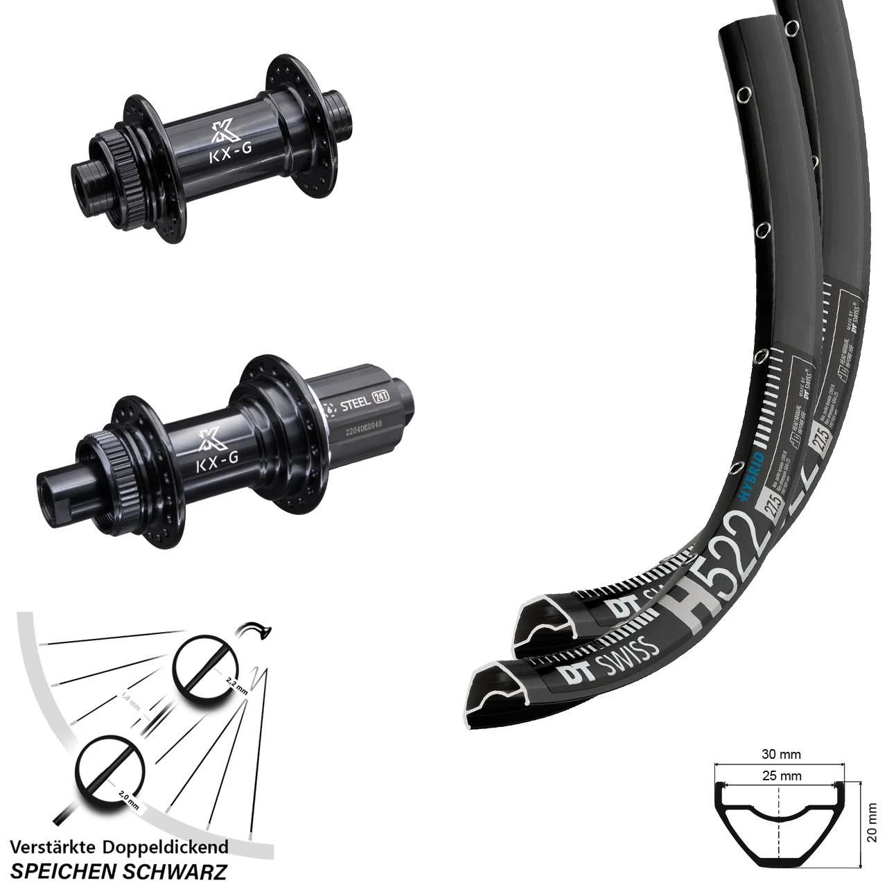 - 1 KX-GS Steckachse 142 mm Centerlock DT Swiss H 522 Hinterrad 29 Zoll (Auswahl zwischen Messingnippel schwarz, Messingnippel silbern)