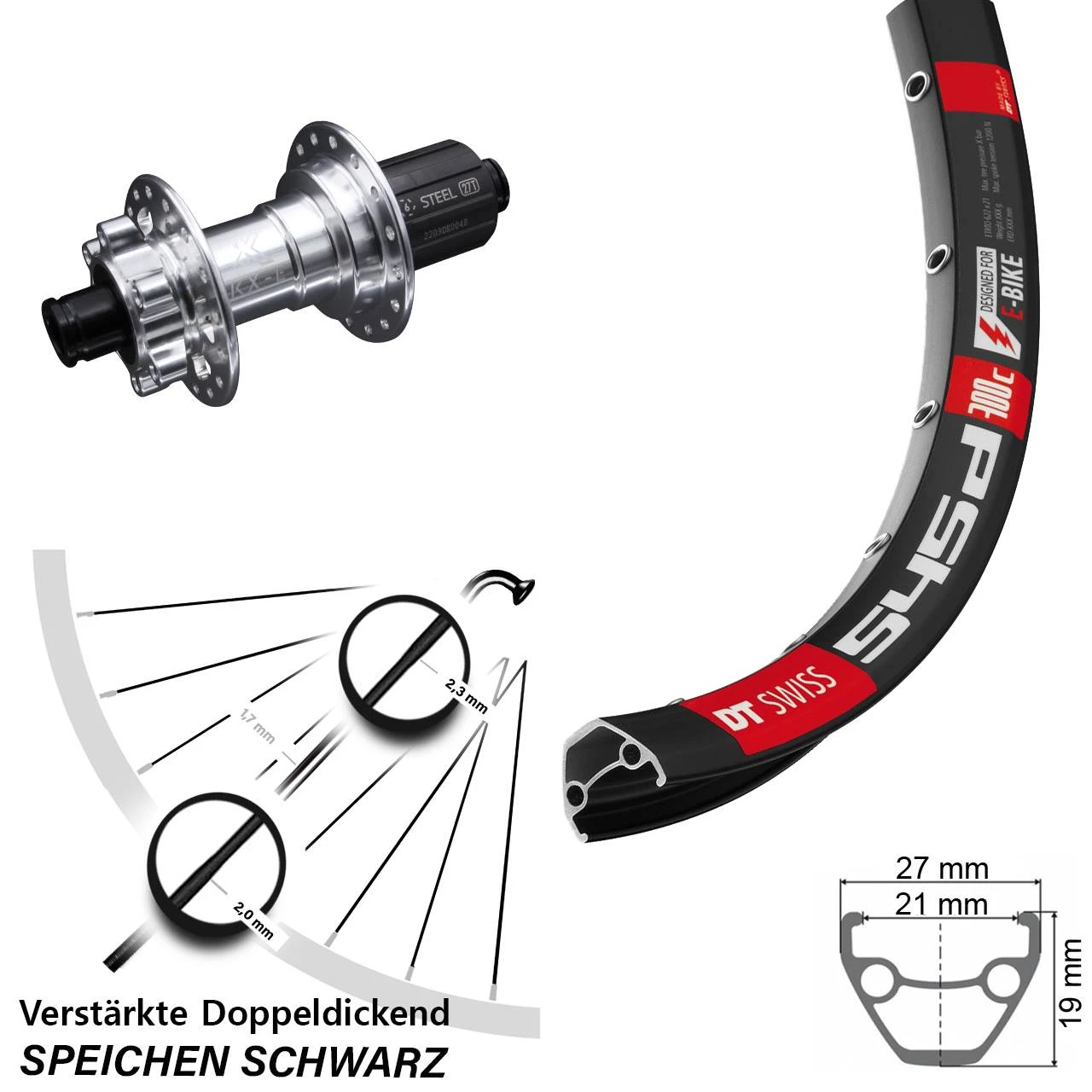 - Felge MaĂe: Höhe 19 mm / Breite 27 mm