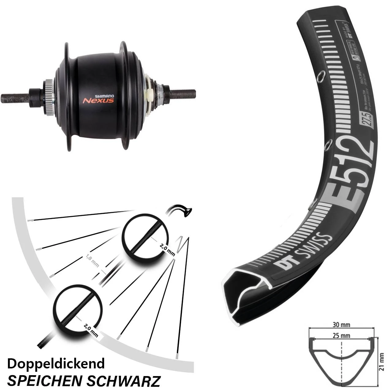 Technische Daten Hinterrad DT Swiss E 512 DB Disc schwarz und Nabe Shimano SG-C6001-8D schwarz