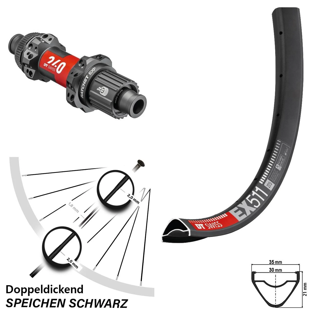 Technische Daten Hinterrad DT Swiss EX 511 Disc schwarz und Nabe DT Swiss 240 EXP Boost Straightpull Microspline Centerlock 12/148