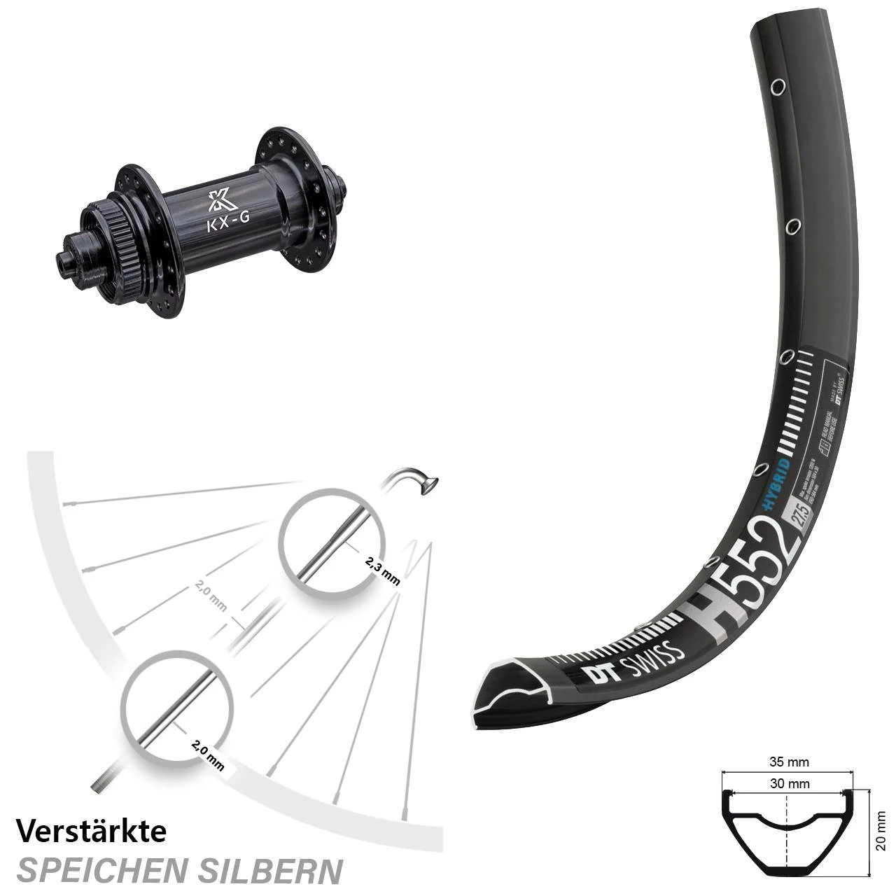 Technische Daten Vorderrad DT Swiss H 552 Disc schwarz mit Nabe KX-G Vorderradnabe 5/100 Centerlock