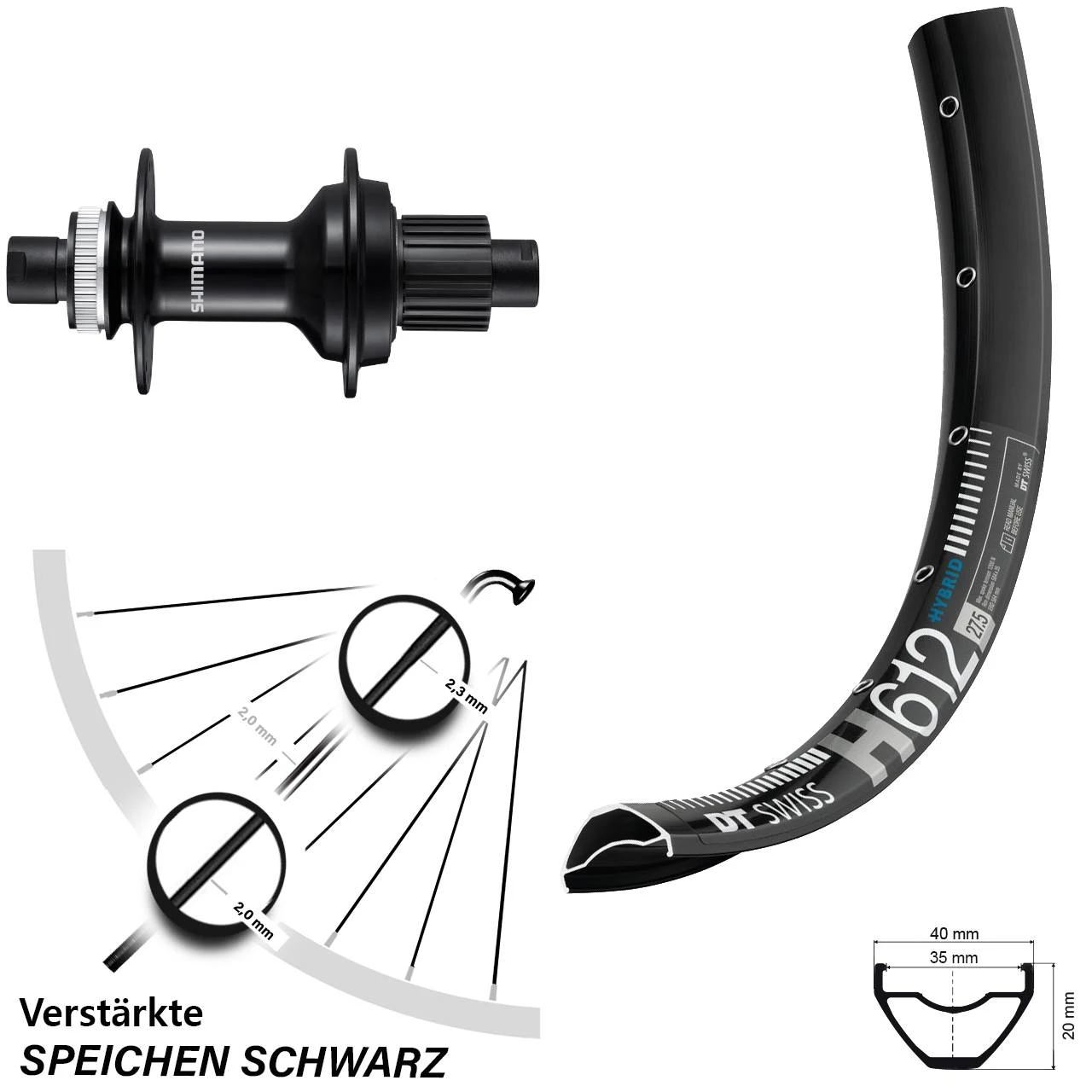 Produktbeschreibung DT Swiss H 612 Hinterrad 27,5+ Zoll Boost mit Shimano FH-MT510B Nabe Microspline