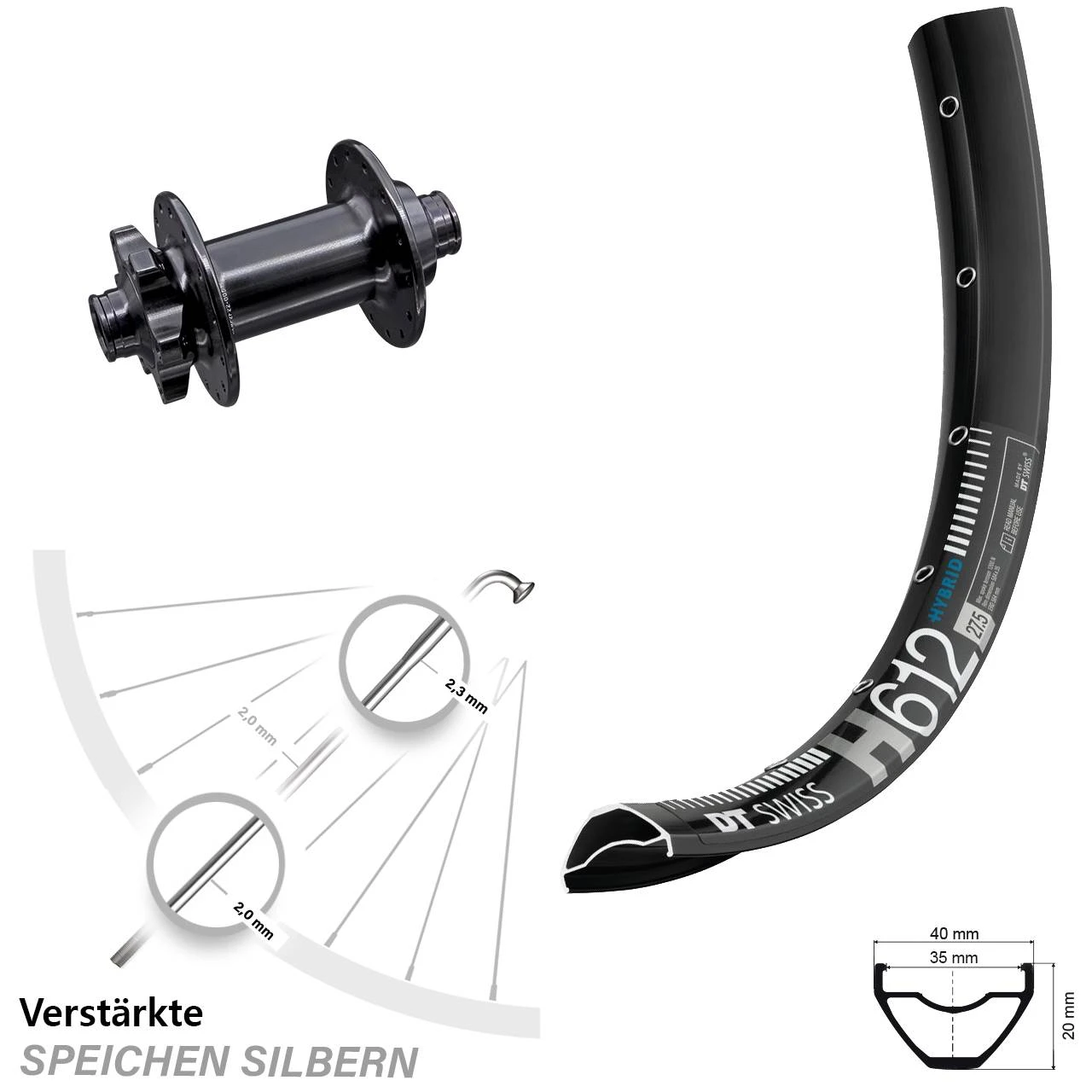 Produktbeschreibung DT Swiss H 612 Vorderrad 27,5+ Zoll mit Aivee Boost Nabe