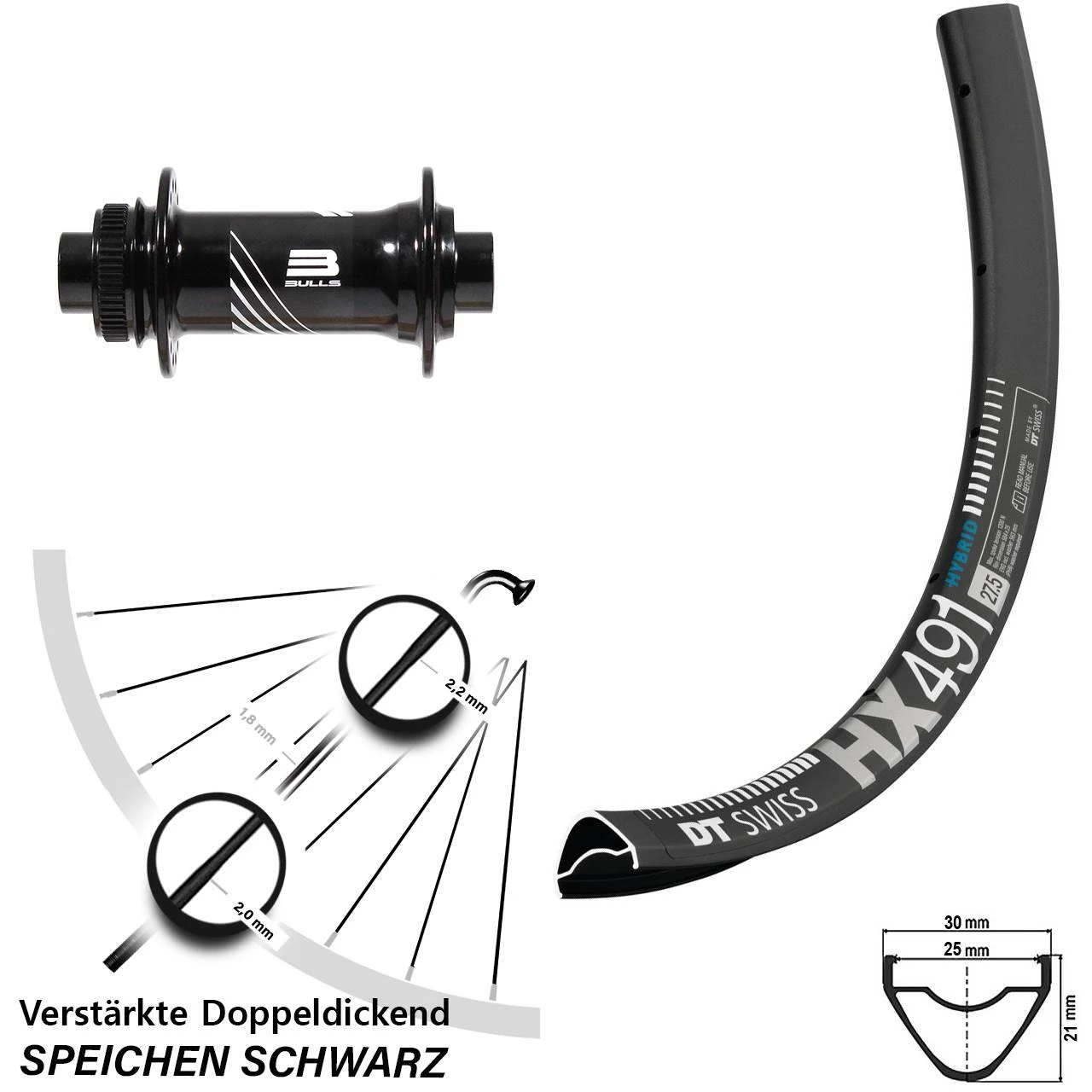 Technische Daten Vorderrad DT Swiss HX 491 DB Disc schwarz mit Nabe Formula CL-811 Bulls Boost schwarz
