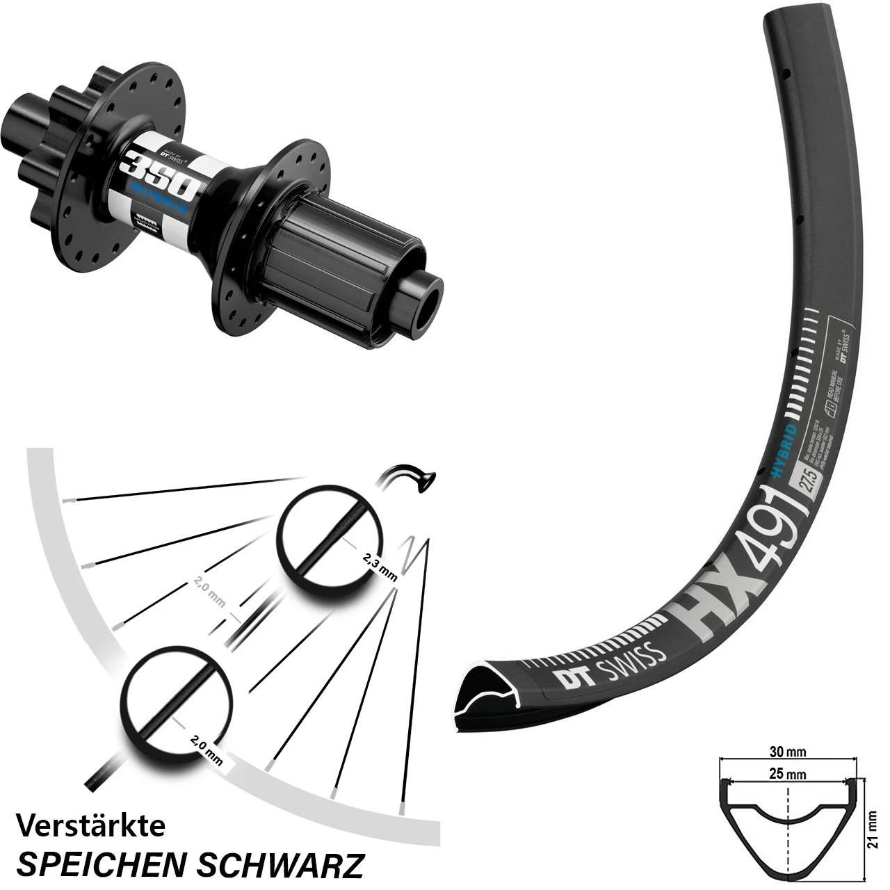 Technische Daten Hinterrad DT Swiss HX 491 DB Disc schwarz und Nabe DT Swiss 350 Hybrid 6-Loch 12/142