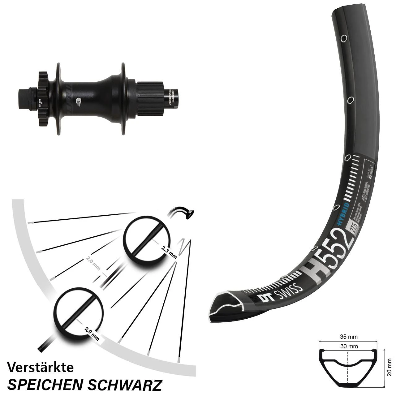 Technische Daten Hinterrad DT Swiss H 552 Disc schwarz und Nabe Syncros Boost Shimano Micro Spline