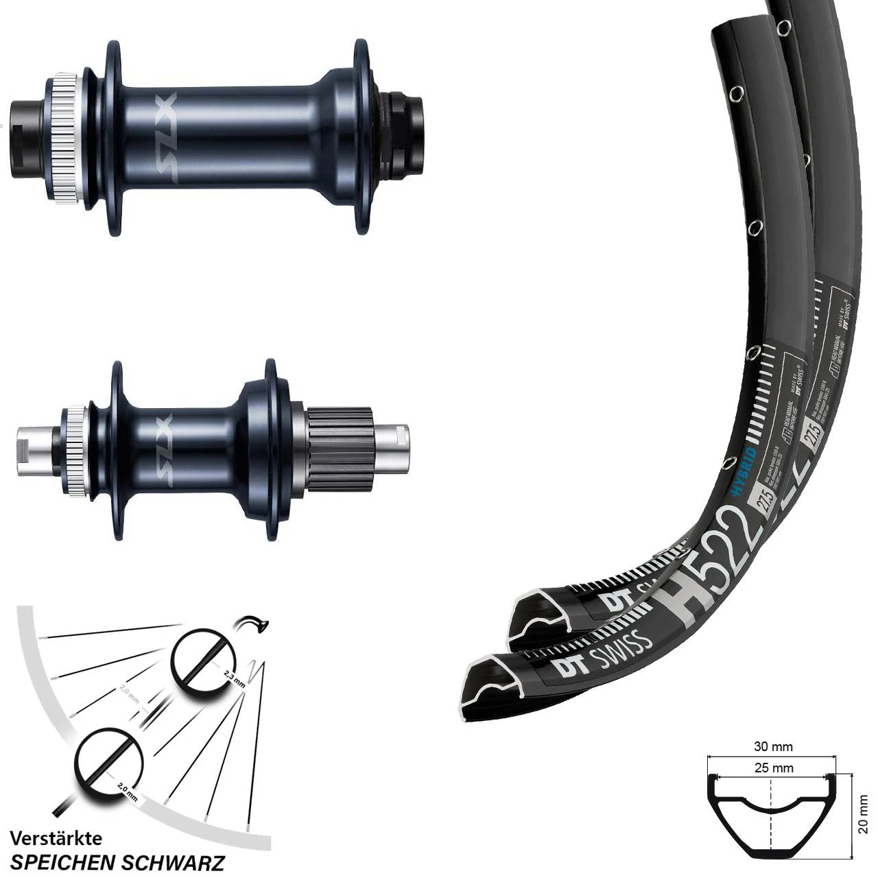 Laufradsatz 29 Zoll DT Swiss H 522 Shimano SLX Boost Centerlock Micro Spline 12-fach mit verstÀrkten Speichen
