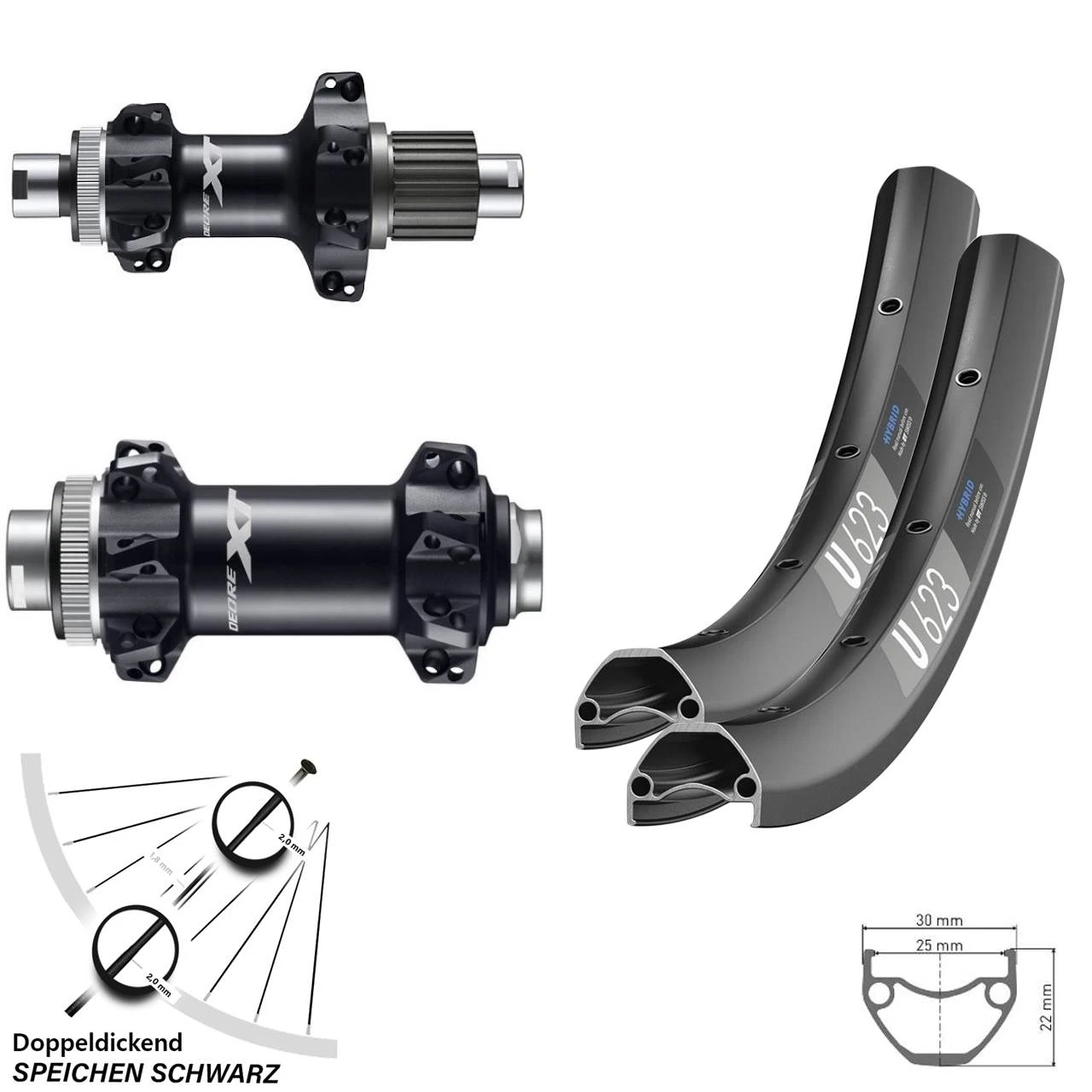 - 1 Hinterrad 29 Zoll DT Swiss U 623 Shimano Deore XT FH-M8110-BS Straightpull 12-fach (Auswahl zwischen Messingnippel schwarz, Messingnippel silbern)