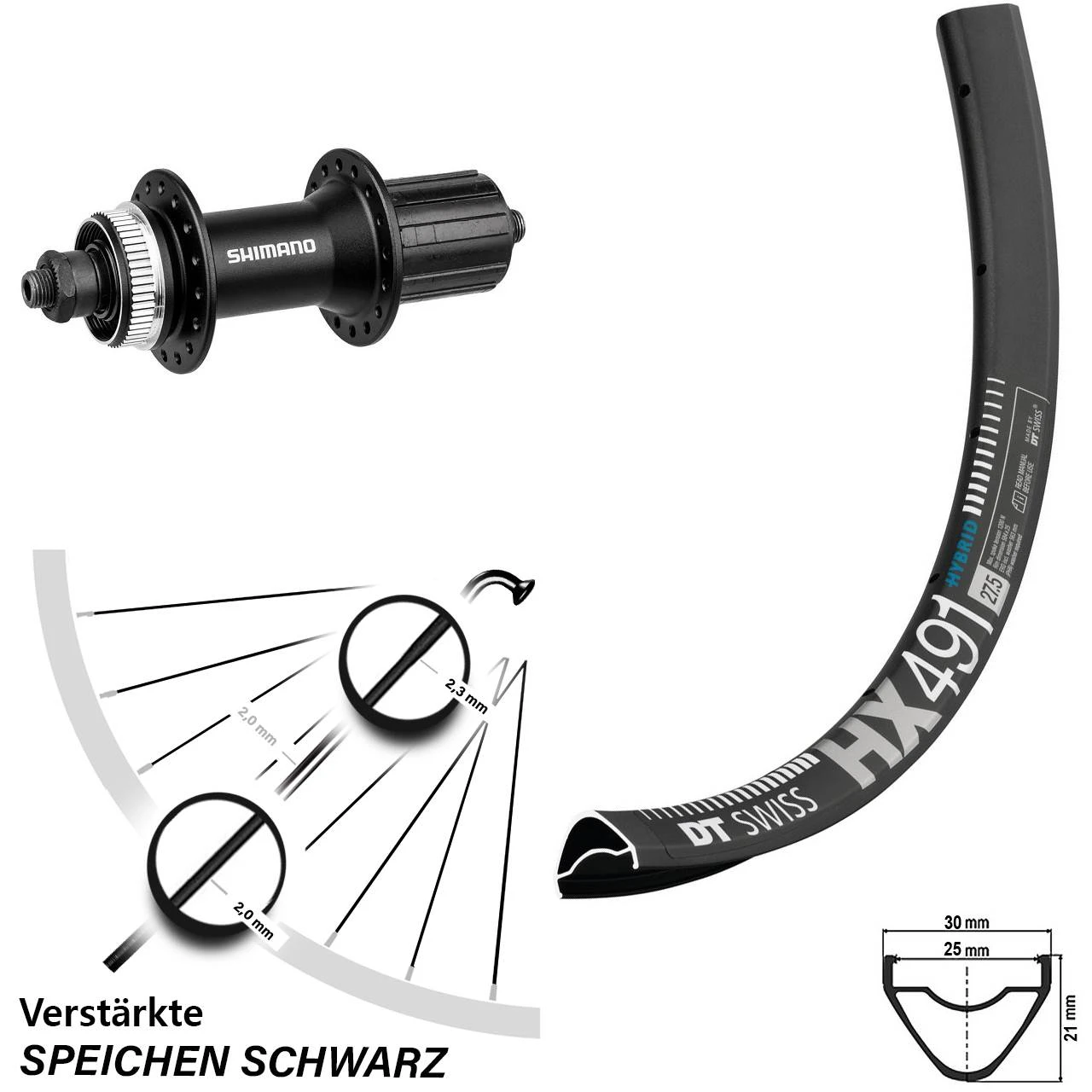 Technische Daten Hinterrad DT Swiss HX 491 DB Disc schwarz und Nabe Shimano FH-M4050 schwarz