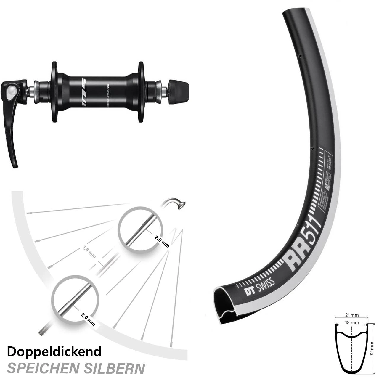 Produktbeschreibung Vorderrad 28 Zoll DT Swiss RR 511 RB Felgenbremse Shimano HB-R7000 schwarz