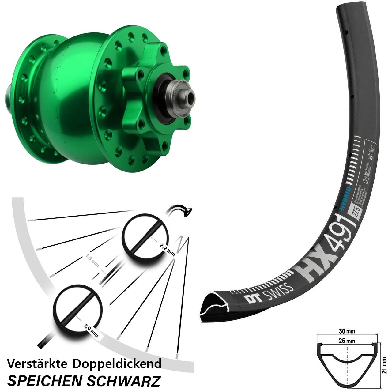 - Felge: DT Swiss HX 491 DB Disc schwarz