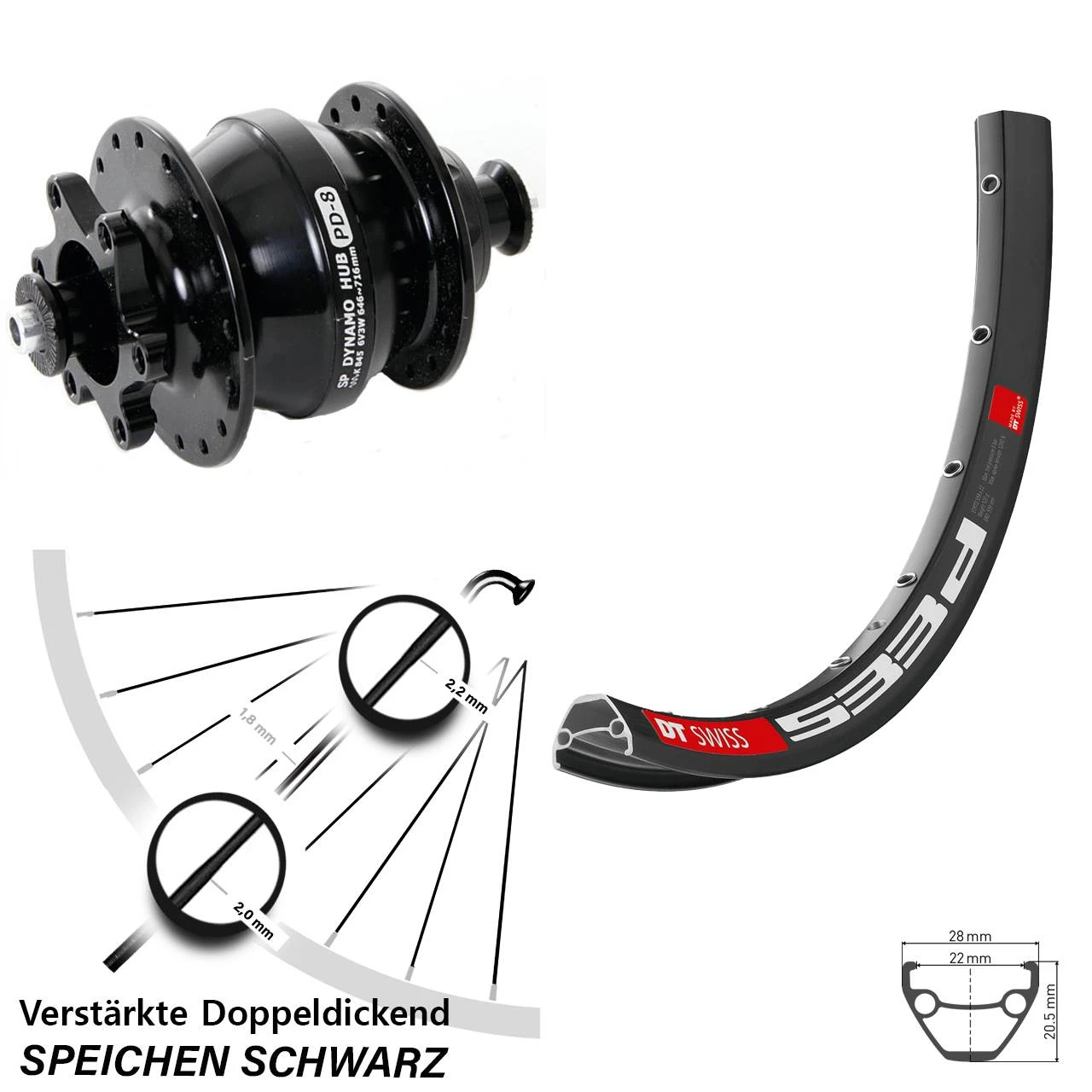 - Vorderrad 26 Zoll DT Swiss 533 D schwarz mit Nabendynamo Shutter Precision PD-8 schwarz