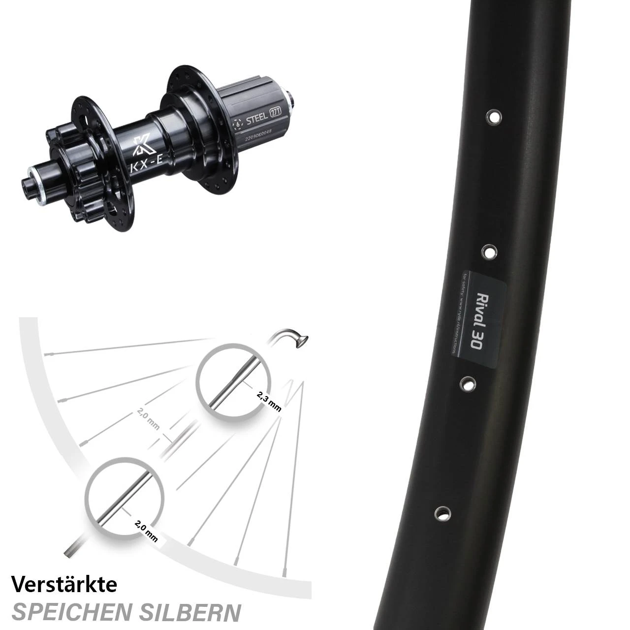 Produktbeschreibung Hinteres Rad 29 Zoll Ryde Rival 30 Disc mit KX-E Nabe 5×135 mm 6-Loch 11-fach