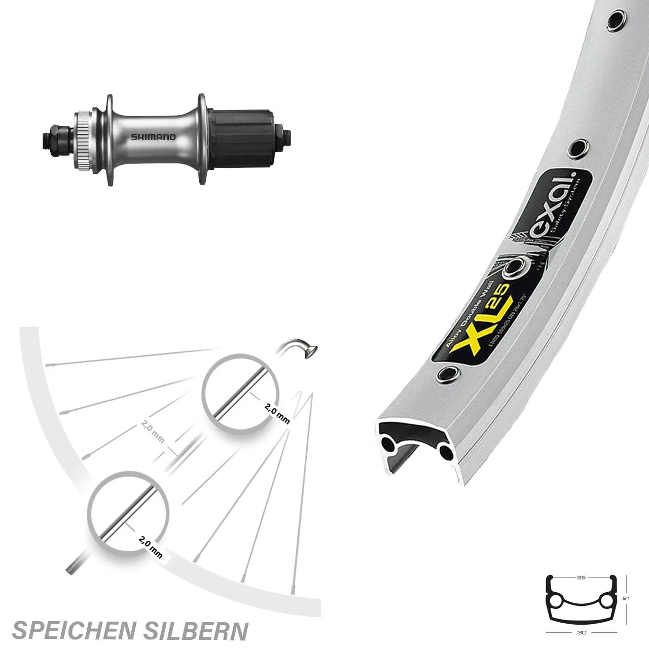 Technische Daten Hinterrad Exal XL 25 silbern und Nabe Shimano FH-M4050 sibern