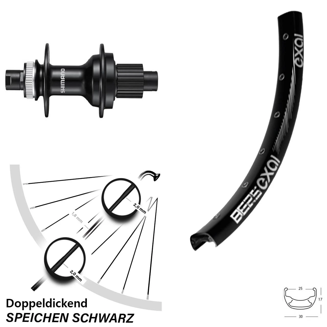 Technische Daten Hinterrad Exal BE 25 schwarz und Nabe Shimano FH-MT510 schwarz