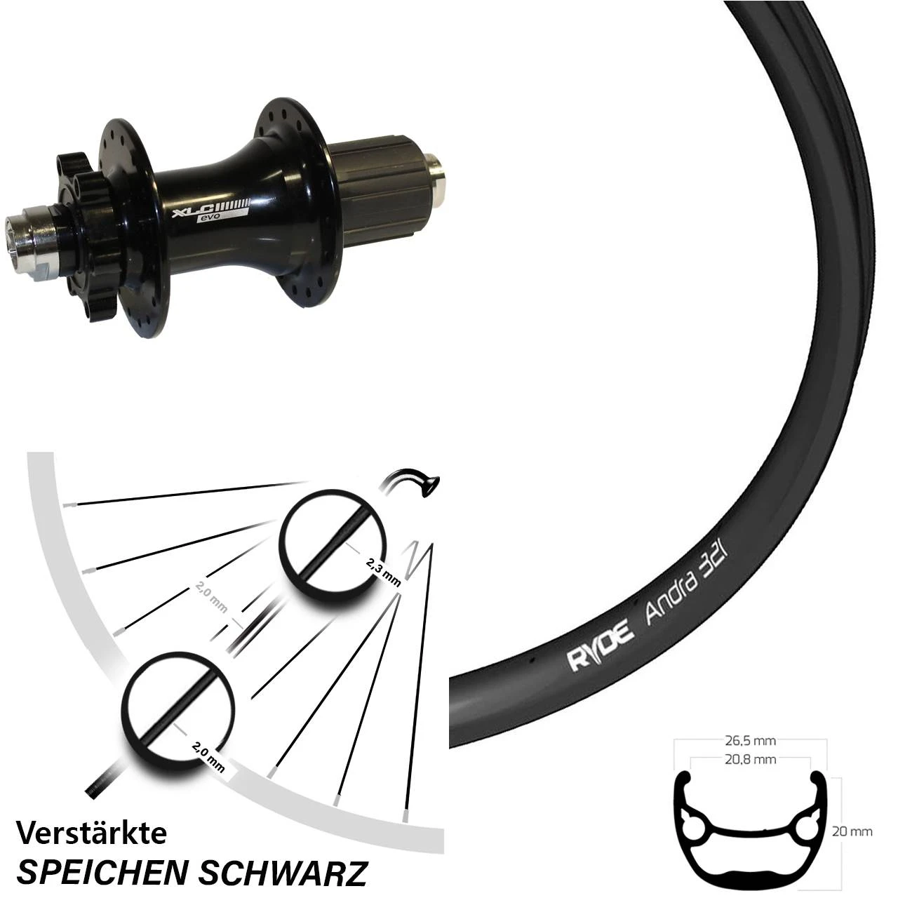 Hinterrad 27,5 Zoll Ryde Andra 321 XLC Evo Nabe 8-11-fach schwarz mit verstÀrkten Speichen