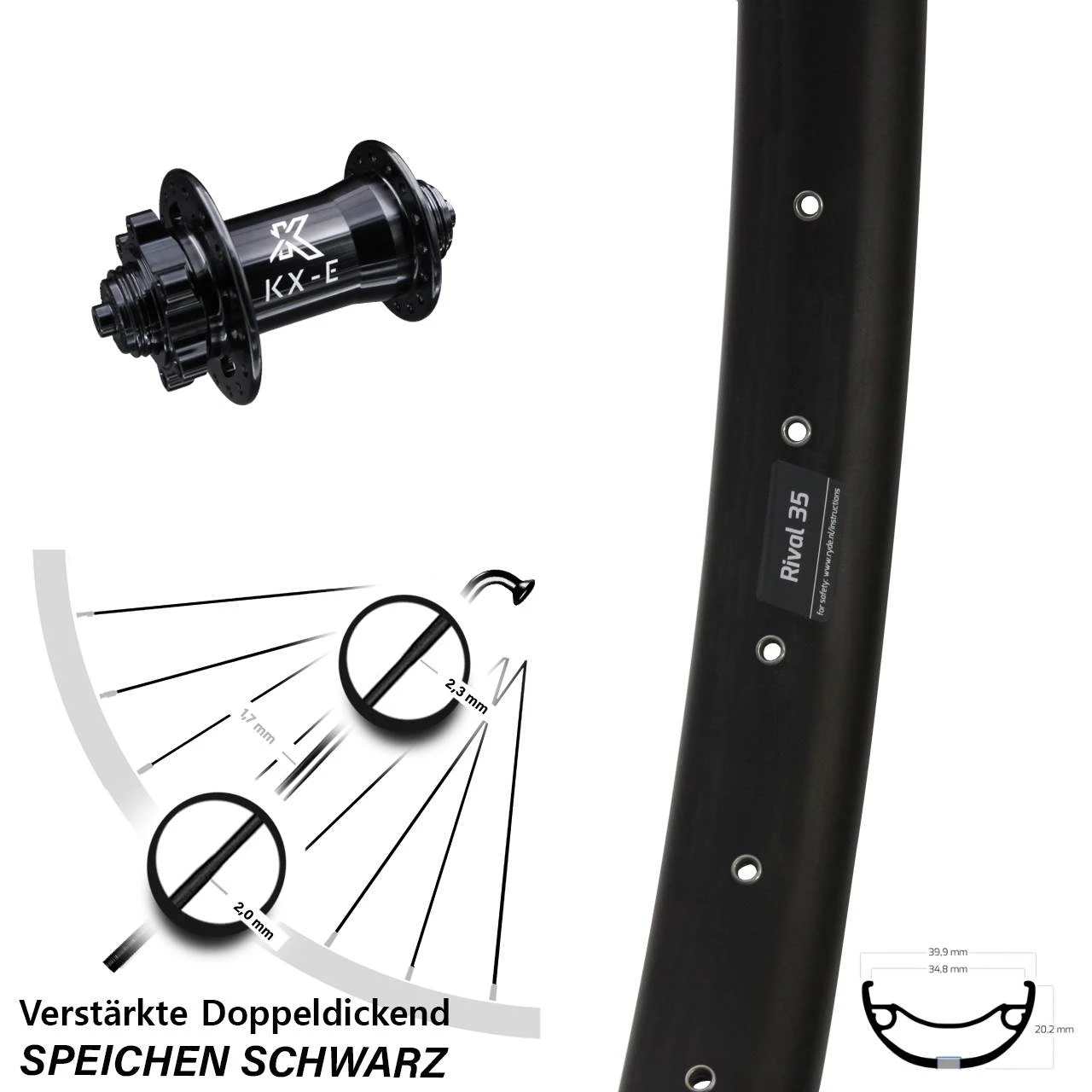 Produktbeschreibung KX-E Nabe 5×100 mm 6-loch Ryde Rival 35 Disc Vorderrad 27,5+ Zoll E-Bike