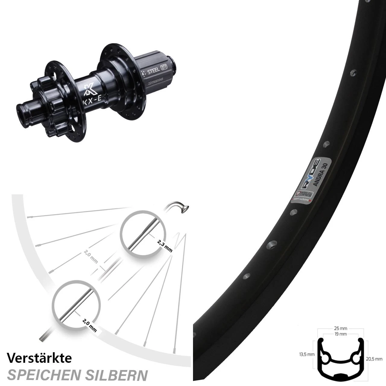 Produktbeschreibung KX-E Nabe schwarz 12×142 mm 6-Loch 11-fach Ryde Andra 30 Disc Hinteres Rad 28-29 Zoll