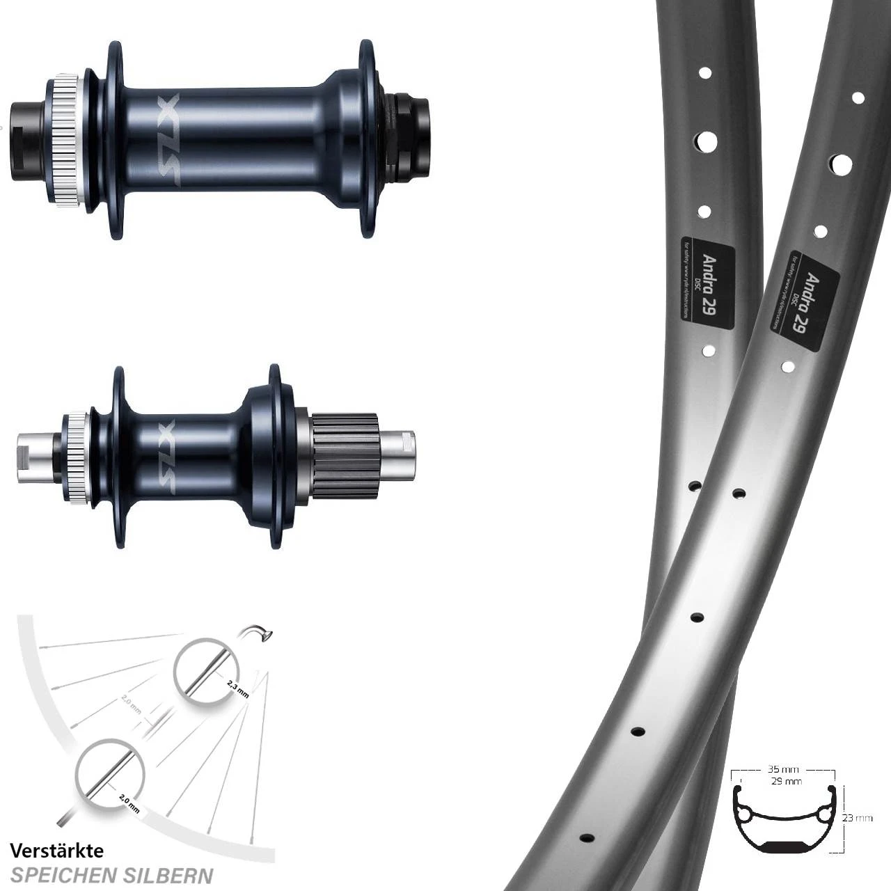 Produktbeschreibung Laufradsatz 29 Zoll Boost Shimano SLX Microspline mit Ryde Andra 29 silbern verstÀrkt