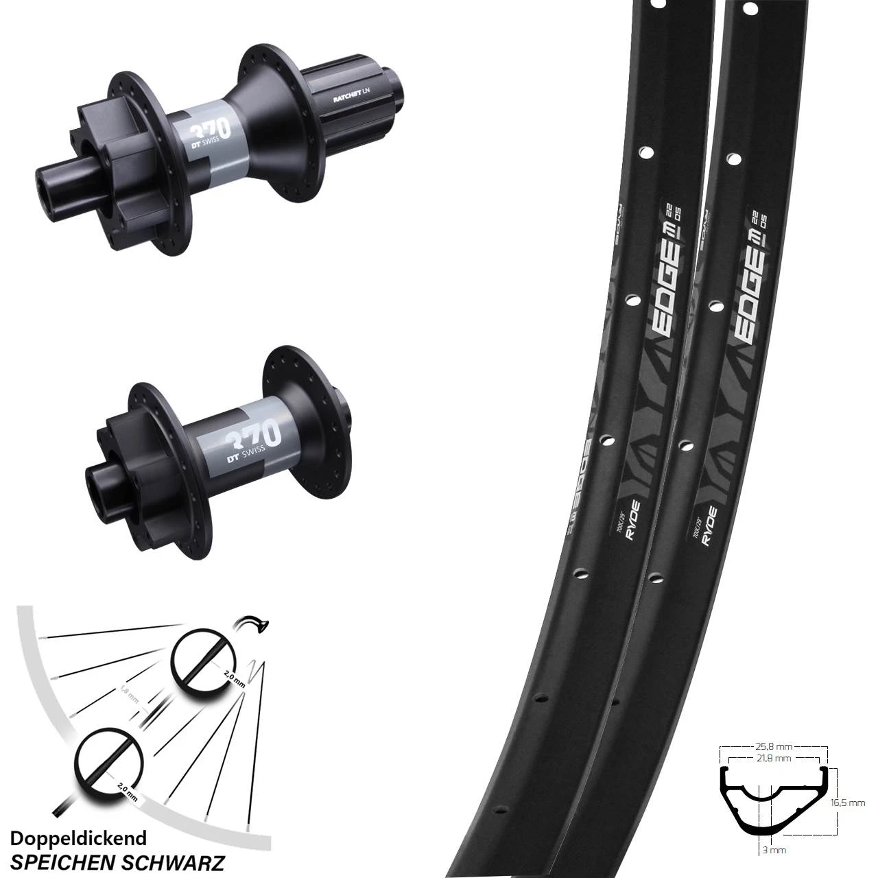 - 1 DT Swiss 370 Steckachse 12×142 mm 29 Zoll Hinterrad 6-Loch Ryde Edge M22-622 ETRTO (Auswahl zwischen Messingnippel schwarz, Messingnippel silbern)