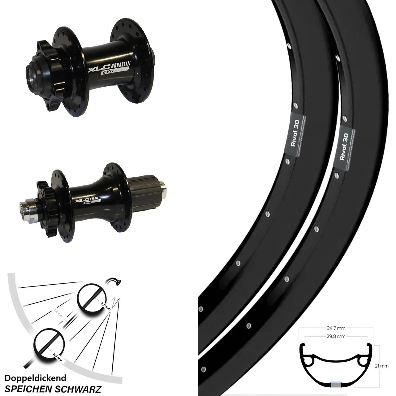 Technische Daten Laufradsatz 29 Zoll XLC Evo Steckachse Felge Ryde Rival 30