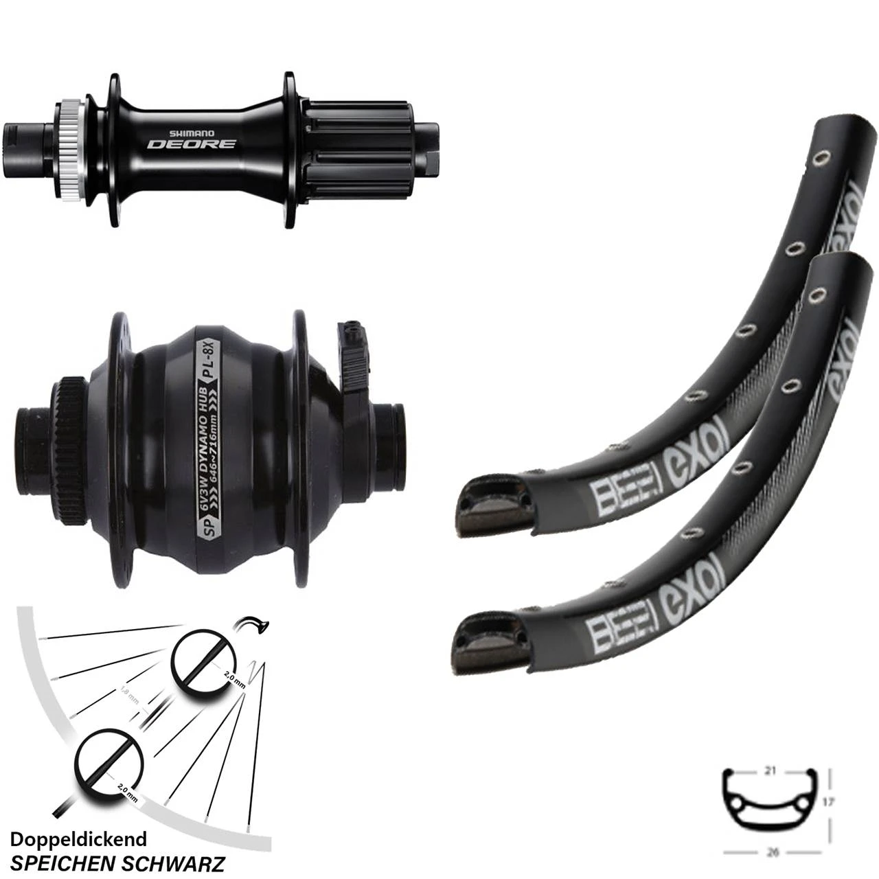 Produktbeschreibung Laufradsatz Dynamo 29 Zoll Exal BE 21 Felge Shutter Precision PL-8X 15 mm Shimano Deore