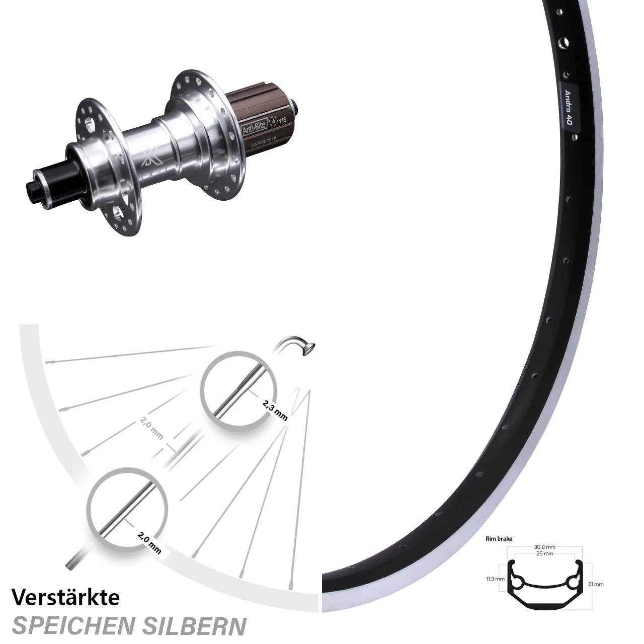 Nabe 6-fach gelagert KX-T 135 mm silbern eloxiert Ryde Andra 40 Hinterrad 26 Zoll mit verstÀrkten Speichen
