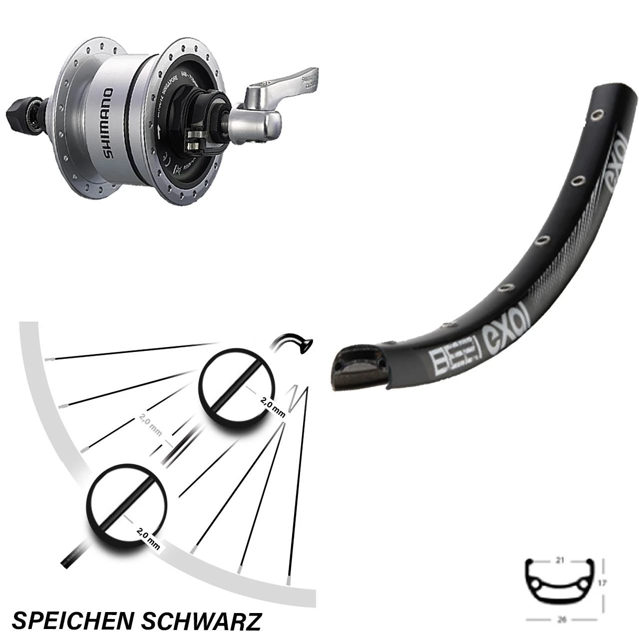 Produktbeschreibung Nabendynamo Vorderrad Fahrrad 26 Zoll Shimano DH3D72 Exal BE21 schwarz