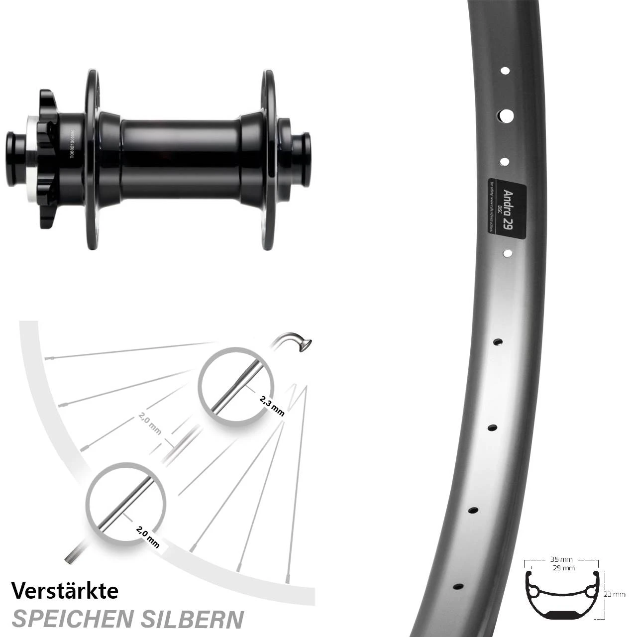 Technische Daten Vorderrad Ryde Andra 29 Disc silbern mit Nabe Novatec D341-B15 Boost schwarz