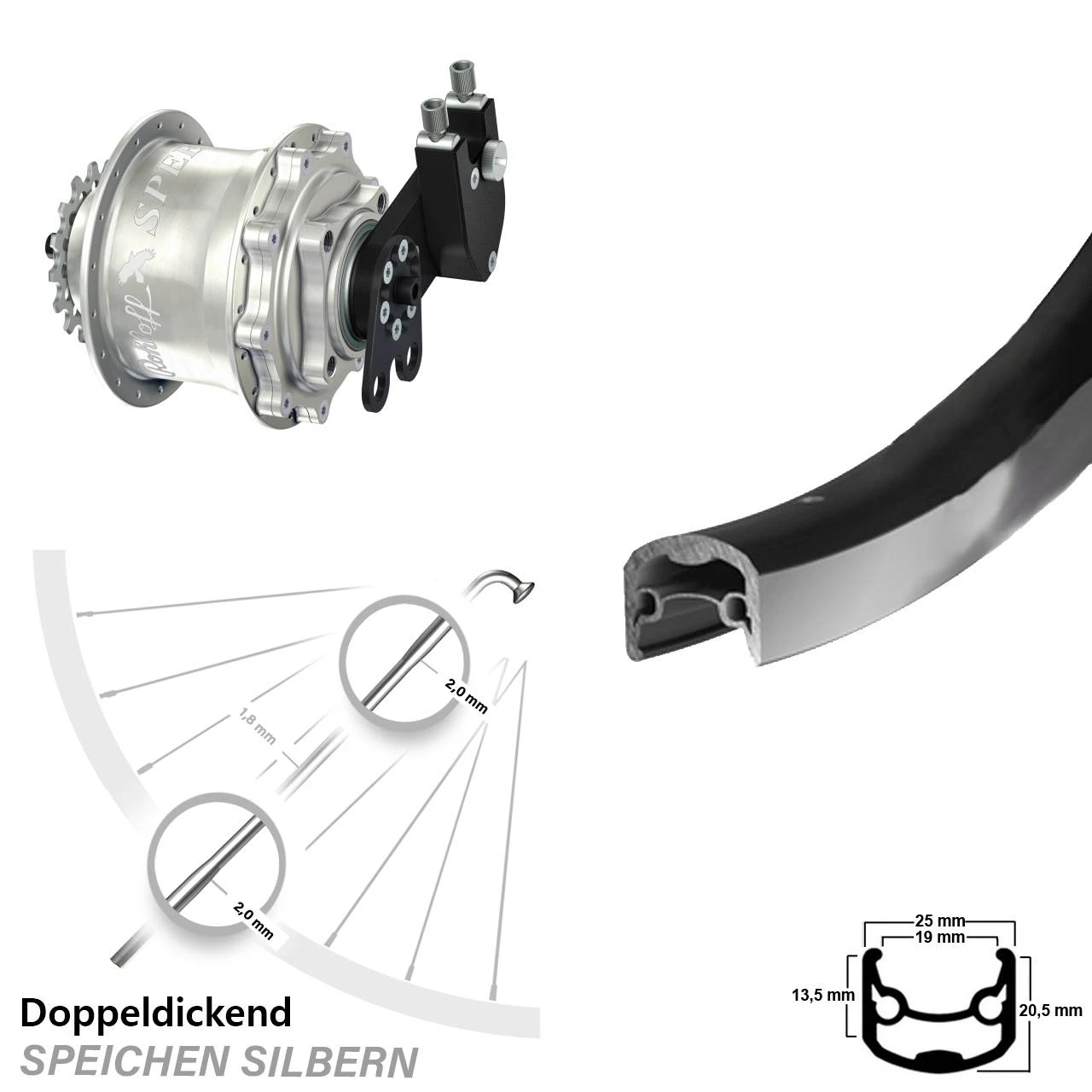Technische Daten Hinterrad Ryde Andra 30 Felgenbremse schwarz und Nabe Rohloff Speedhub 500/14 CC DB silbern