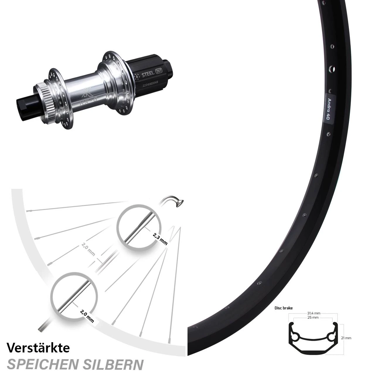 - Ryde Andra 40 Disc Hinterrad 20 Zoll mit KX-GS silbern eloxiert Steckachse Centerlock Nabe